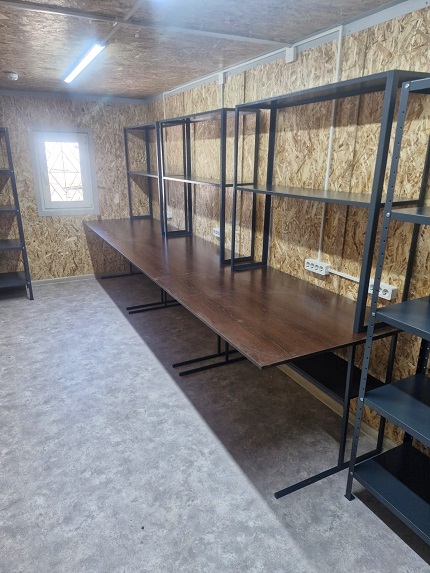 Электропакет: снаружи вилка силовая стационарная 32А в комплекте с розеткой переносной, внутри вводной шкаф со счетчиком и автоматическими выключателями на розеточную сеть и на освещение. Два светильника светодиодных и пять четырехпостовых розеток.
